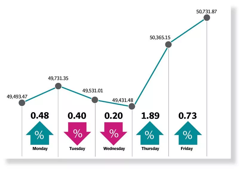 A key event of the week came when the benchmark KSE-100 index crossed the psychological barrier of 50,000 points, thanks to a robust buying spree.