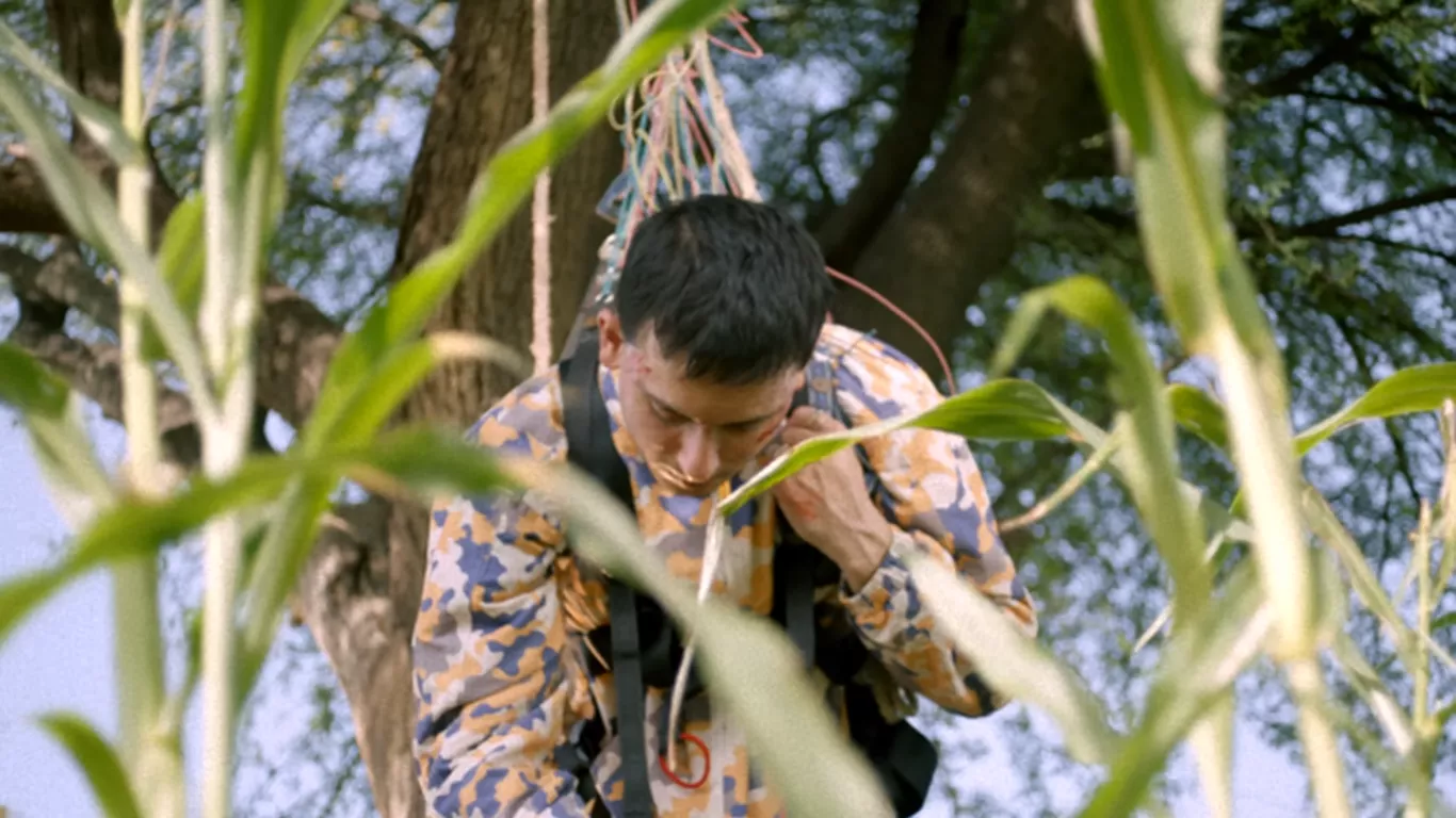 The music video nods at this liminal stage between loss and gradual acceptance with visuals of an injured Raheem dangling from a tree in paratrooper gear. The lack of momentum is contrasted with superimposed flashbacks of him riding a motorcycle, interrupted by occasional blue and red flashes to signal an impending road traffic accident. Underscoring the transition between timelines, the flashbacks are monochromatic with a 4:3 aspect ratio.