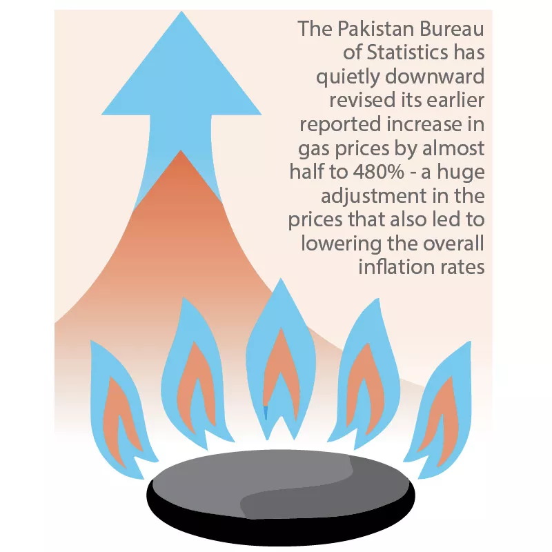 The Pakistan Bureau of Statistics has quietly downward revised its earlier reported increase in gas prices by over half to 480% – a significant adjustment that also contributed to a lower overall inflation rate in February.