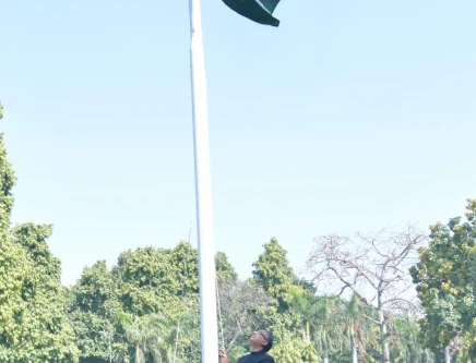 The Charge d' Affaires of Pakistan to India Saad Ahmad Warraich hoisted the national flag at the Chancery lawn. The messages of the president and prime minister of Pakistan were read on the occasion.