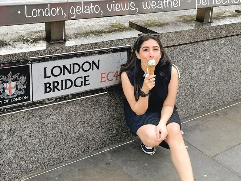 In the picture that has divided the internet, Mariyam can be seen sitting by the iconic London Bridge, indulging in some gelato. She’s dressed in a chic and casual black sleeveless dress that cuts off before the knees.