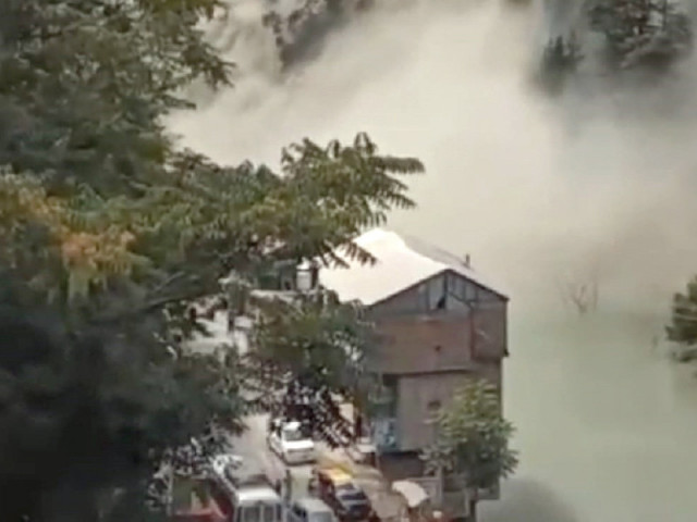 The landslides have also uprooted several trees, which have fallen into the Kunhar River, spreading dust clouds and causing widespread fear among residents.