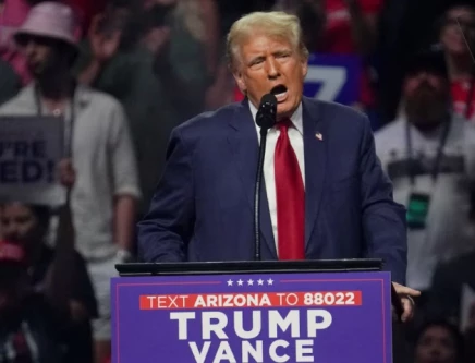 Republican presidential nominee and former US President Donald Trump speaks at a rally in Glendale, Arizona, U.S., August 23, 2024. PHOTO:REUTERS