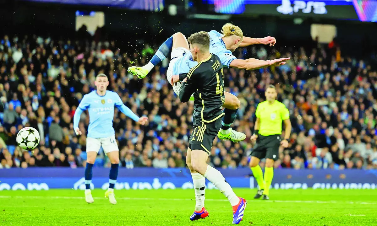 Erling Haaland's spectacular acrobatic effort lit up Manchester City's 5-0 win over Sparta Prague on Wednesday to move into third place in the Champions League table.
