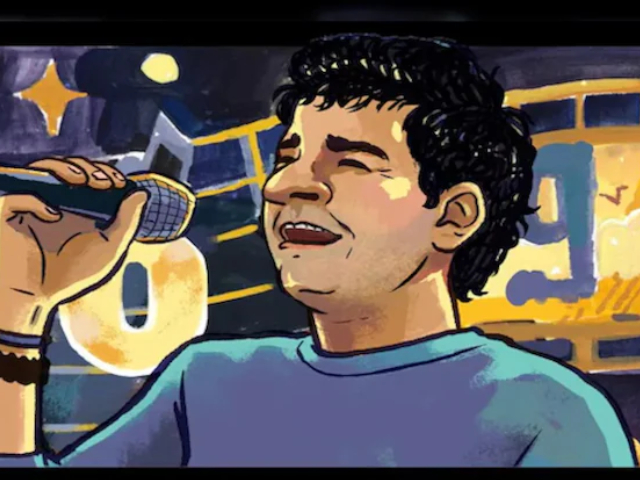 On this day in 1996, KK’s first song, "Chhod Aaye Hum," was released in Gulzar's political thriller Maachis. The doodle features KK standing and singing with a microphone, set against a backdrop of the Google logo, accompanied by music notes and star emojis.