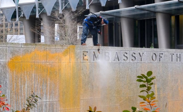 Environmental activists target US embassy, decry Trump victory as ‘climate breakdown’
