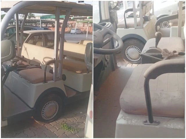 Two electric vehicles introduced at the Rawalpindi Institute of Cardiology (RIC) to transport elderly and critically ill patients from the main gate to the emergency and OPD units have become completely non-functional and now lie abandoned, effectively turning into scrap.