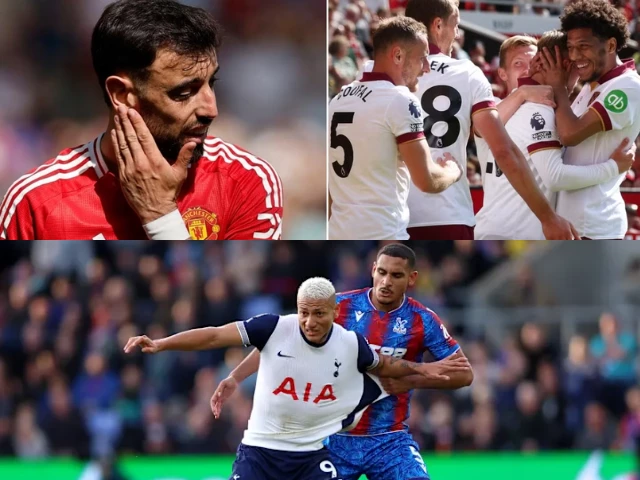 Manchester United suffered a 2–0 defeat to West Ham United, while Tottenham lost 2–0 at home to Crystal Palace.