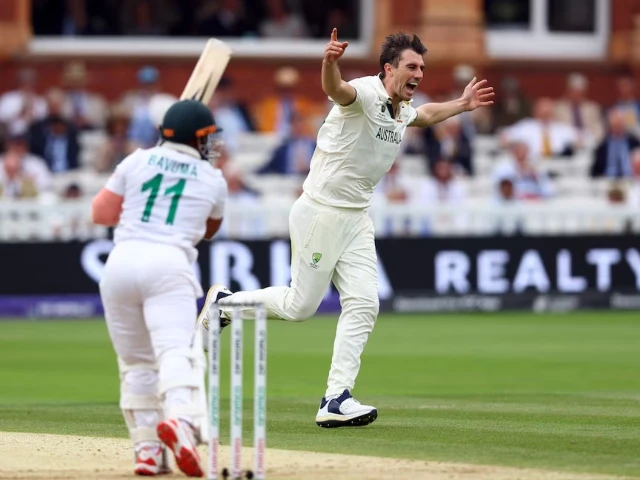 Australia captain Pat Cummins starred with the ball and Alex Carey made valuable runs following a dramatic collapse as the holders retained the advantage in the World Test Championship final against South Africa on Thursday.