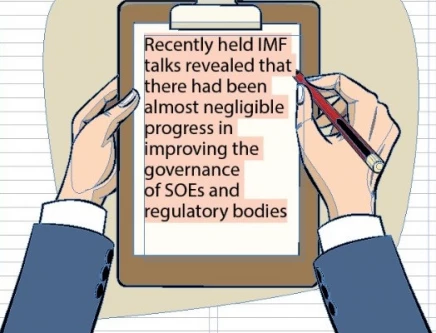 The proceedings of a recently held preparatory meeting for the upcoming IMF review talks for the $1 billion loan tranche revealed that there had been almost negligible progress in improving the governance of public sector firms and regulatory bodies, finance ministry sources told The Express Tribune.