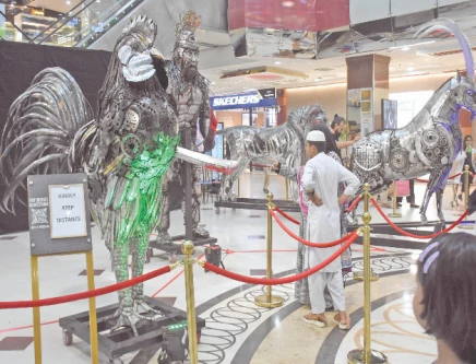 Sculptures made of metal scrap on display at a mall in Islamabad. Photo: ONLINE