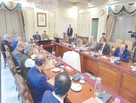 Prime Minister Shehbaz Sharif chairs a meeting attended by his cabinet members as well as Field Marshal Syed Asim Munir. Photo: APP