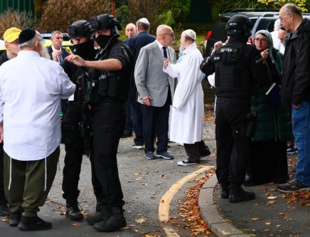 UK police said on Friday they shot two victims, including one who died, as officers responded to an attack on worshippers at a Manchester synagogue marking a Jewish holiday.