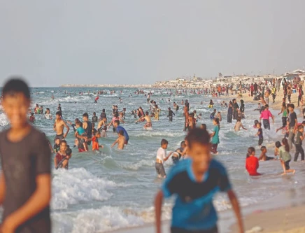 Displaced Palestinians swim in the Mediterranean sea on the shores of Khan Yunis in the southern Gaza Strip. Photo: AFP