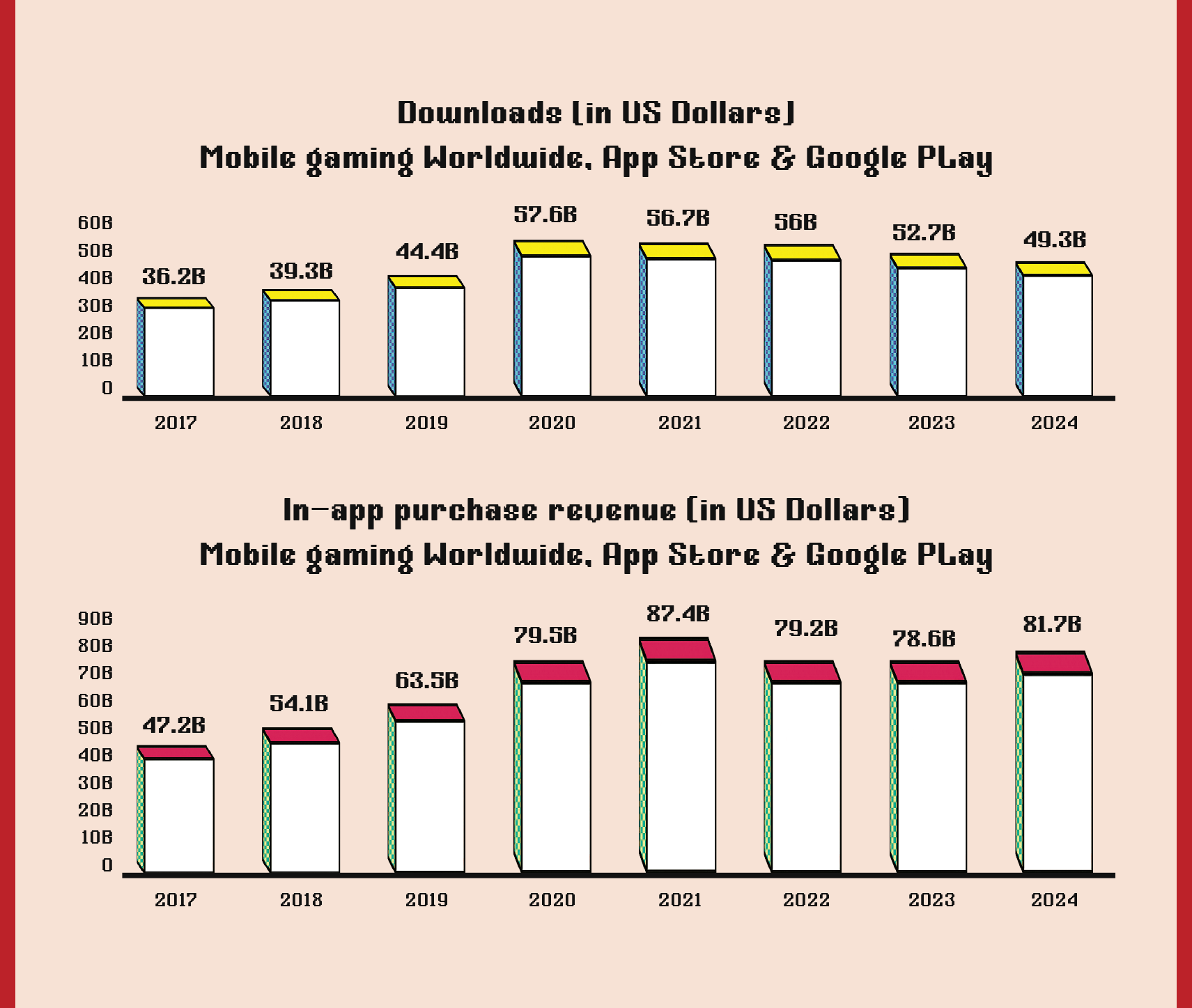 The figures are staggering. Globally, in-app purchases in mobile games brought in more than 80 billion US dollars in 2024. Almost half of all mobile app revenue now comes from these purchases, leaving ads and paid downloads far behind. In some reports, games account for nearly two thirds of the overall app economy.
