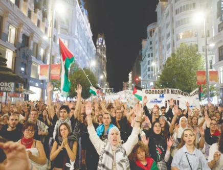 People take part in a demonstration in support of Palestinians and to condemn Israeli forces’ interception of the Global Sumud Flotilla vessels, in Madrid. Photo: REUTERS