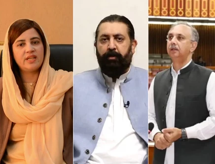 PTI leaders (From Left) Zartaj Gul, Sheikh Waqas and Omar Ayub. Photo: Files