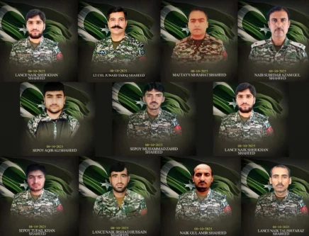 The fallen soldiers include Naib Subedar Azam Gul (38, Khyber), Naik Adil Hussain (35, Kurram), Naik Gul Ameer (34, Tank), Lance Naik Sher Khan (31, Mardan), Lance Naik Talish Faraz (32, Manshera), Lance Naik Irshad Hussain (32, Kurram), Sepoy Tufail Khan (28, Malakand), Sepoy Aqib Ali (23, Swabi), and Sepoy Muhammad Zahid (24, Tank).