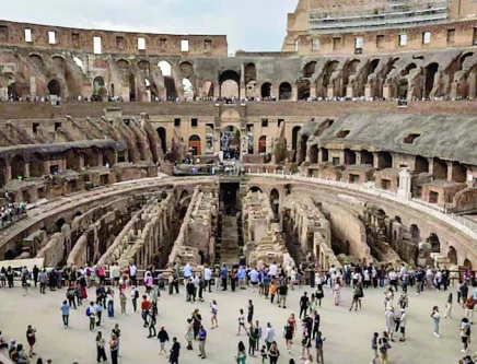 It once had marble walls, later replaced with plaster decorated with landscapes, the Colosseum Archaeological Park said in a statement. It also had stuccowork showing mythological scenes on the vault, and representations of arena spectacles, including bear fights and acrobats, in niches at its entrance.