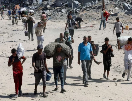 Palestinians in the southern Gaza Strip following Israeli forces withdrawl from the area.PHOTO: REUTERS