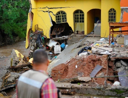 A man looks at a destroyed house as torrential rains from tropical storm Raymond triggered landslides and flooding in Jalcocotan, Nayarit state, Mexico October 12, 2025. PHOTO: REUTERS