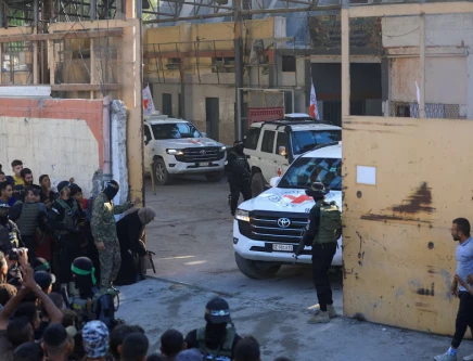 Reuters footage showed dozens of Hamas fighters lined up at a hospital in southern Gaza, one wearing a shoulder patch identifying him as a member of the elite "Shadow Unit" that Hamas sources say was tasked with guarding hostages.