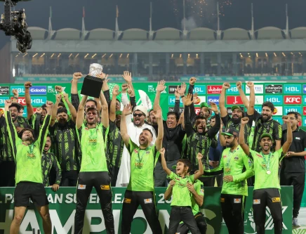 Lahore Qalandars celebrate with the PSL trophy after winning the 10th edition earlier this year. PHOTO: PSL