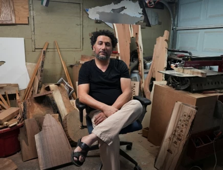 Inside his garage workshop in Duluth, Georgia, Arman meticulously cuts, sands, and seals pieces of natural wood to create maps of the region.
