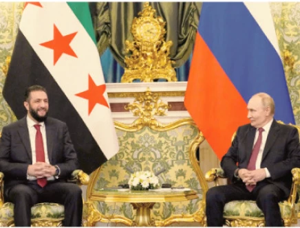 "There are bilateral relations and shared interests that bind us with Russia, and we respect all agreements made with it. We are working on redefining the nature of relations with Russia," Sharaa, who was speaking in Arabic, told Putin.