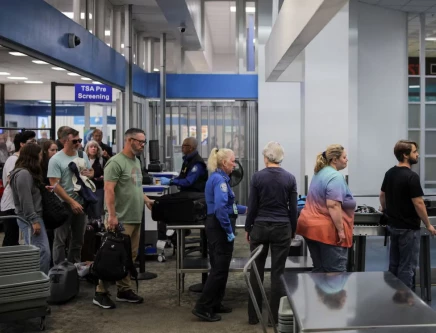 Travelers pass through a Transportation Security Administration (TSA) security screening at Hollywood Burbank Airport during the first day of a partial US government shutdown in Burbank, California, U.S., October 1, 2025. PHOTO: REUTERS