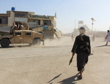 Afghan Taliban fighters patrol near the Afghanistan-Pakistan border in Spin Boldak, Kandahar Province, following exchanges of fire between Pakistani and Afghan forces in Afghanistan on October 15. Photo: Reuters