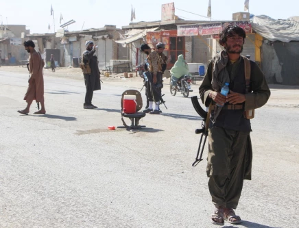 Afghan Taliban patrol near the Afghanistan-Pakistan border in Spin Boldak, Kandahar Province on October 15. Photo: Reuters