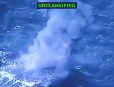 A video grab shows the destruction of allegedly drug boat in Pacific. PHOTO: YAHOO NEWS
