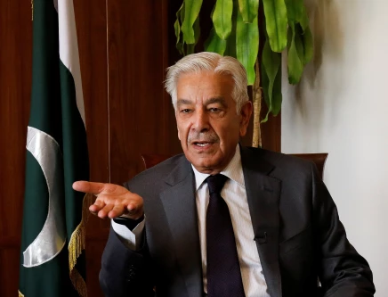Defence Minister Khawaja Muhammad Asif during an interview. Photo: Reuters