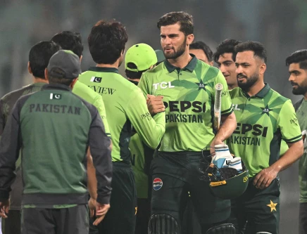Pakistan's captain Shaheen Shah Afridi (C) celebrates with teammates at the end of the first one-day international (ODI) cricket match against South Africa at the Iqbal Stadium in Faisalabad on November 4. PHOTO: AFP
