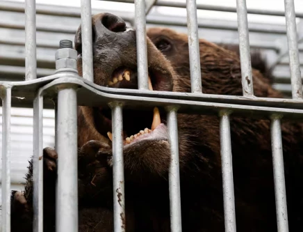 A trapped brown bear in Sunagawa, Hokkaido prefecture. Authorities in Akita prefecture meanwhile say bear sightings have jumped six-fold this year to more than 8,000. Photo: Reuters