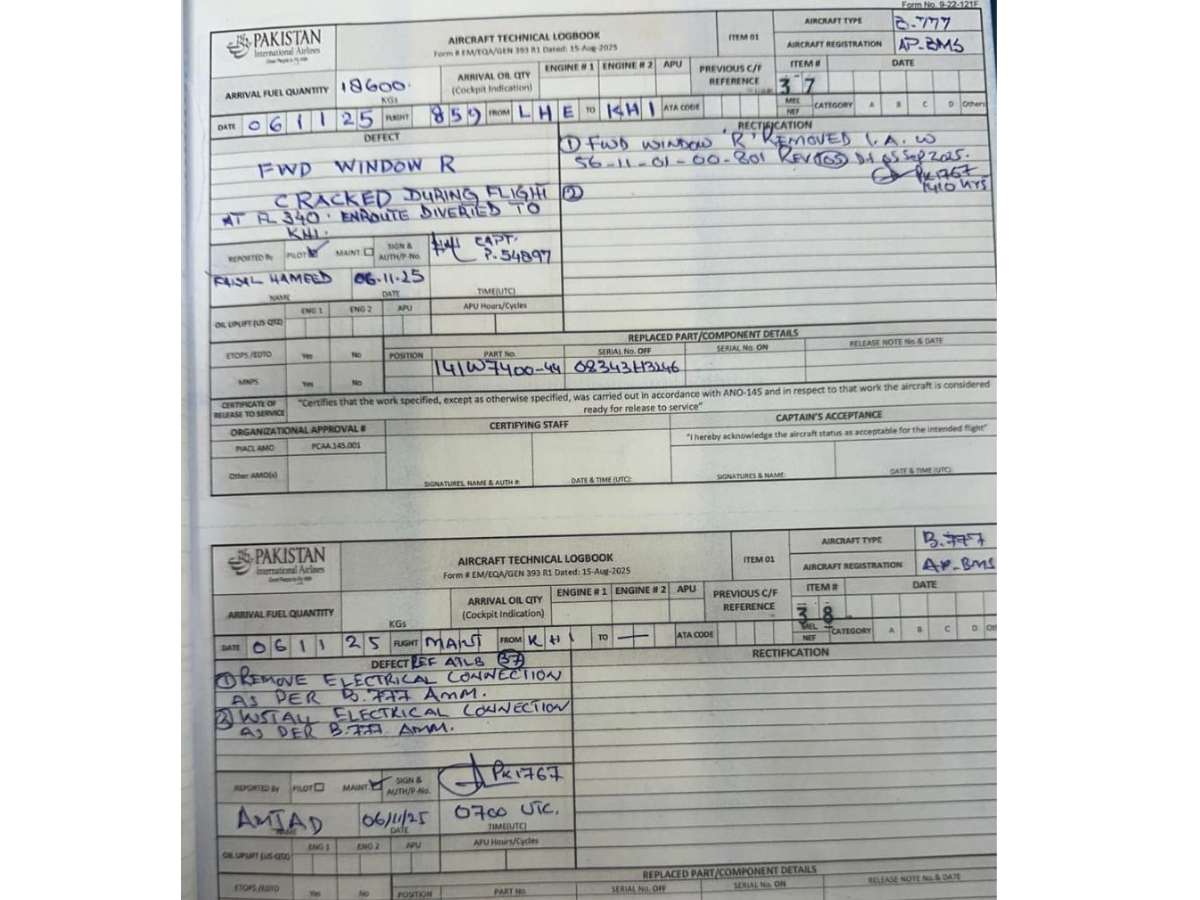 The incident occurred at 34,000 feet, as the flight, travelling from Lahore to Jeddah. Repairs to the aircraft are expected to take around 12 hours. The aircraft’s technical logbook indicates no bird strike during the flight.