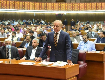 PM Shehbaz Sharif addressing the national assembly in Islamabad. Photo: NAofPakistan/Twitter