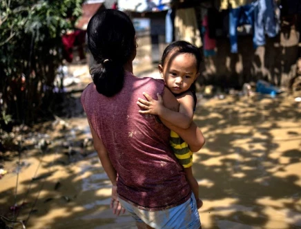Cherry Lyn Cerdoncillo, 22, carrying her son Jovani, 1, walks in muddy water in the aftermath of flooding caused by Typhoon Kalmaegi outside their home in Consolacion, Cebu, Philippines, November 6, 2025. PHOTO: REUTERS