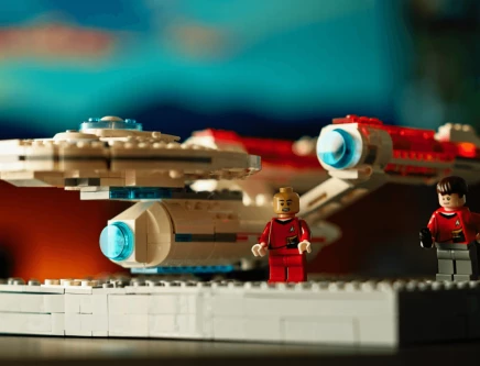 The Enterprise D appeared throughout The Next Generation (1987–1994) and in the 1994 film Star Trek: Generations. Lego’s new version captures the starship’s signature saucer section, secondary hull, and warp nacelles, complete with red and blue detailing.