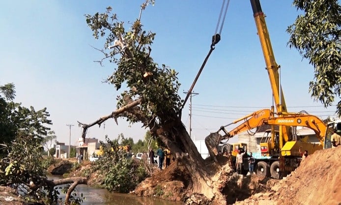 In a rare and emotional rescue mission, the Punjab Forest Department has successfully replanted a 50-year-old banyan tree that had fallen into a canal near Kahna’s Haveli Cheetu Wali area after being uprooted by strong winds. The massive tree, deeply intertwined with the village’s history, was originally planted half a century ago by the late husband of an elderly resident, Majeedan Bibi, for whom it symbolized an entire lifetime of memories.