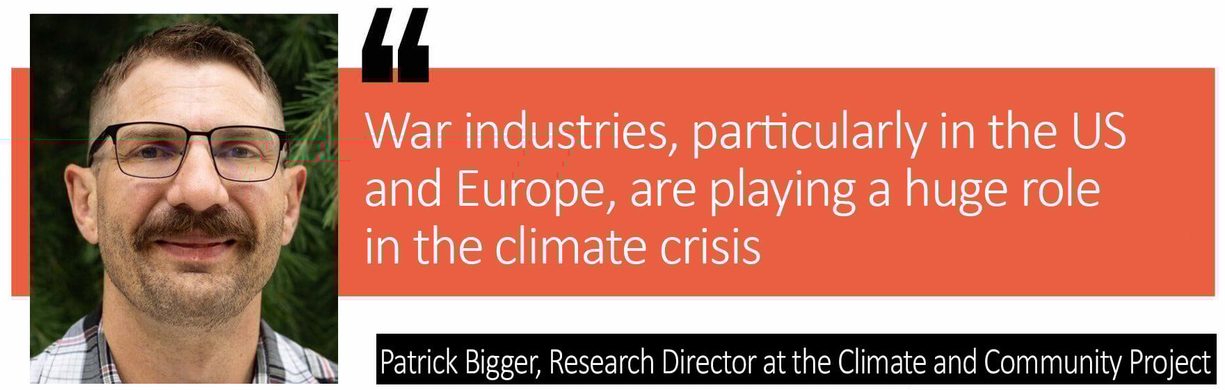 “War industries, particularly in the US and Europe, are playing a huge role in the climate crisis,” Bigger said. “Think of NATO’s new spending rule — three to five percent of GDP. That means more emissions, more liquefied natural gas imports to power the new tank factories in Germany. The peace side of the conversation is still underappreciated.”