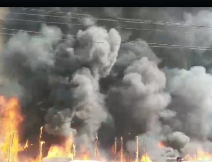 A fire erupted at the Lighthouse, Karachi, in Lunda Bazar on Thursday. Firefighters rushed to the scene to bring the blaze under control.