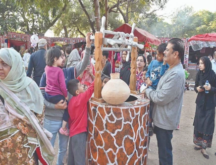 Visitors enjoy exploring traditional cultural displays at the Lok Mela 2025, a ten-day annual folk festival at Lok Virsa, Islamabad, showcasing Pakistan’s diverse heritage and craftsmanship. Photo: APP