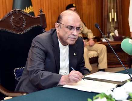 President Asif Ali Zardari on Thursday signed the 27th Constitutional Amendment Bill into law, following its approval by both houses of parliament. With the President's assent, the bill has now formally become part of the Constitution of Pakistan, a presidential news release said.