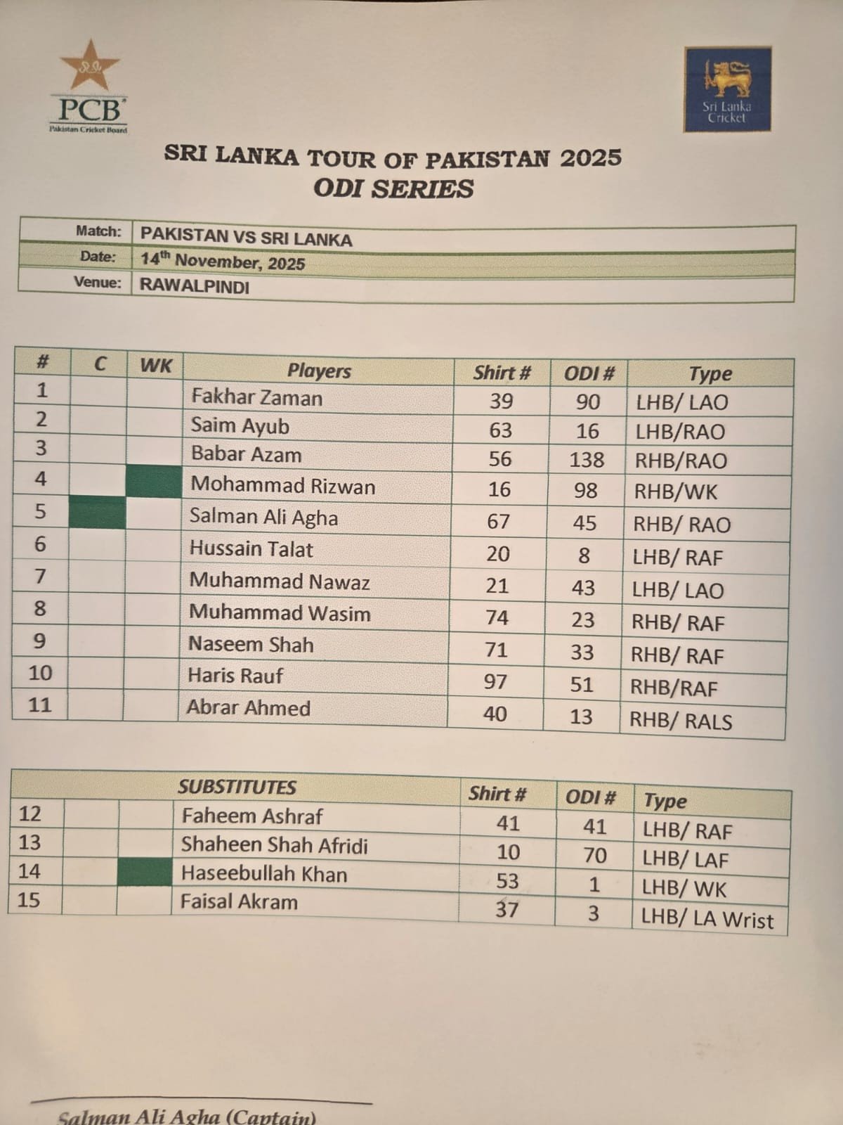 Salman Ali Agha is the captain of Pakistan team instead of Shaheen Afridi