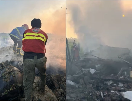 The blast occurred at around 4pm in a house-turned-manufacturing unit and warehouse for firecrackers situated in the middle of agricultural fields near UC-99, opposite Latifabad No. 10. The impact was so intense that its sound was heard across Kohsar and multiple areas of Latifabad. The structure flattened instantly, triggering a massive fire. Debris and human body parts were seen scattered across a wide radius.