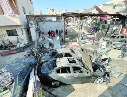 People inspect the damage in the aftermath of an Israeli strike on the Ain al-Hilweh camp for Palestinian refugees, near Sidon in southern Lebanon. Photo: AFP
