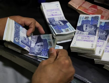 An employee counts Pakistani rupee notes at a bank in Peshawar on August 22, 2023. Photo: Reuters