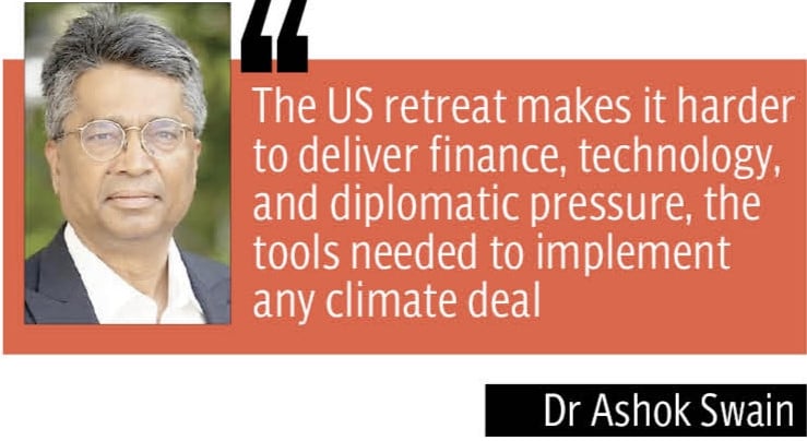 Despite the glaring absence of the US, Brazil — host of this year’s COP30 summit — urged nations to unite behind a deal to strengthen international efforts, even as talks ran past their scheduled close, with countries deadlocked over how far the accord should push a shift away from fossil fuels. “The US staying away from COP30 under Trump had a major negative effect — without one of the world’s biggest emitters and funders at the table, the talks had less political weight and far fewer chances of turning into real action,” said Dr Ashok Swain, professor of peace and conflict research at Sweden’s Uppsala University and author of Climate Security.